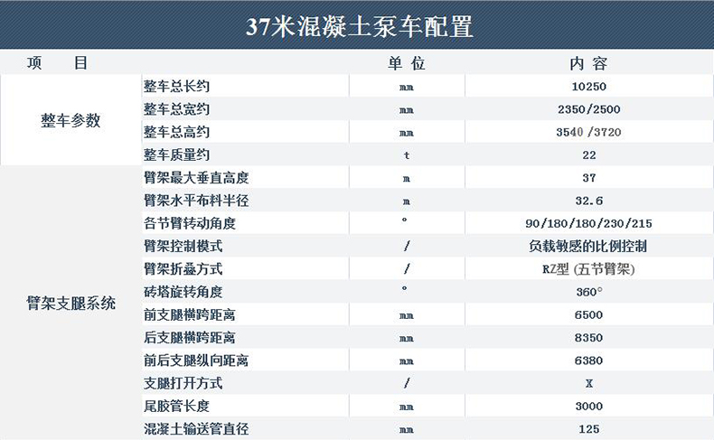 37米小型泵车是一款集移动、泵送、布料多功能于一体的新型混凝土设备。其特点是工程适用性大,自动化程度高,降低了劳动强度,增高了效率,降低了成本,十分适合新农村建设施工。