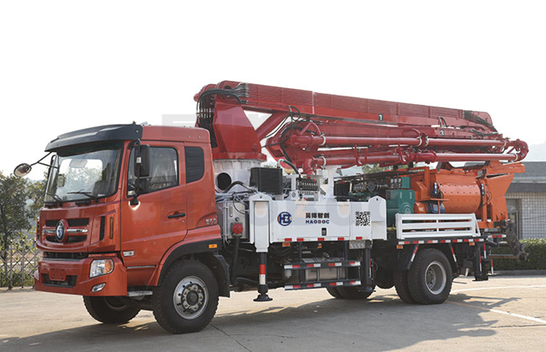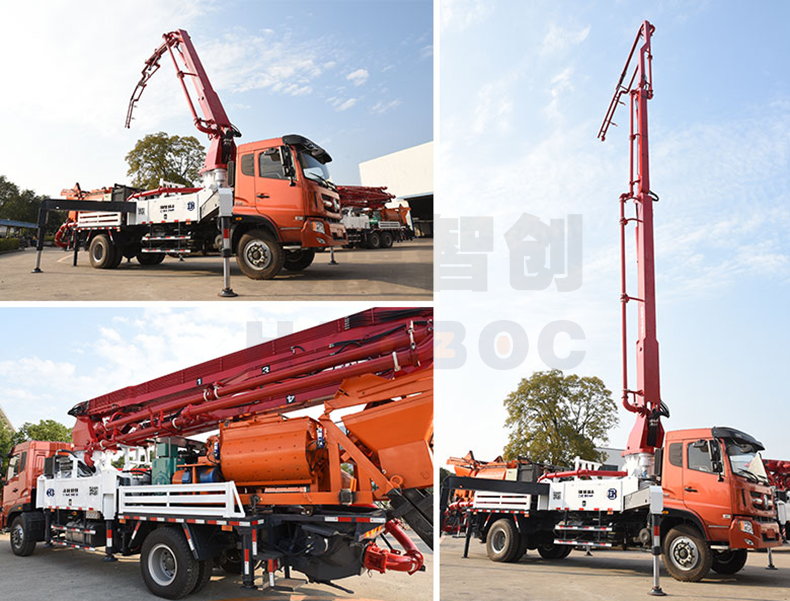 30米搅拌泵车一体机是一款集移动、搅拌、泵送、布料多功能于一体的新型混凝土设备。其特点是工程适用性大,自动化程度高,降低了劳动强度,增高了效率,降低了成本,十分适合新农村建设施工。