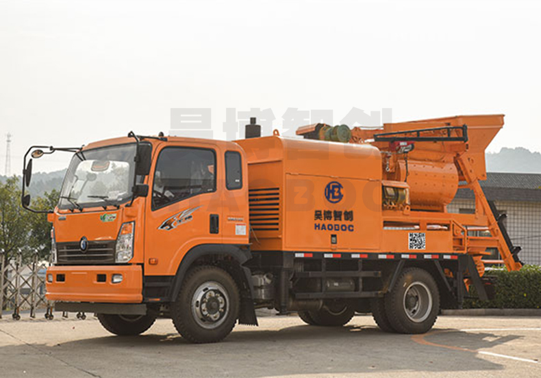 搅拌车载泵是一种将搅拌行走、泵送系统集成在车底盘上,集上料、搅拌、泵送、行走等功能于一体的新型混凝土泵送专用汽车,采用全液压传动,自动化程度高,操作简单,维修方便,移动转场方便,操作所需人工少,非常适用于农村和城乡结合部的混凝土施工。