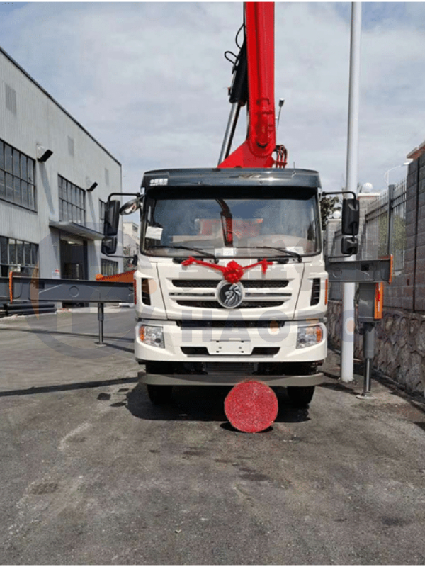 在朋友介绍后李老板决定实地考察一下,来到工厂后,昊博智创的区域经理柳经理告知了他38米搅拌泵车的实际实用性能后,李老板十分认可昊博智创,现场直接签订了一台38米的搅拌泵车。